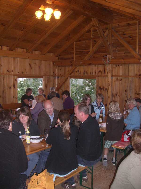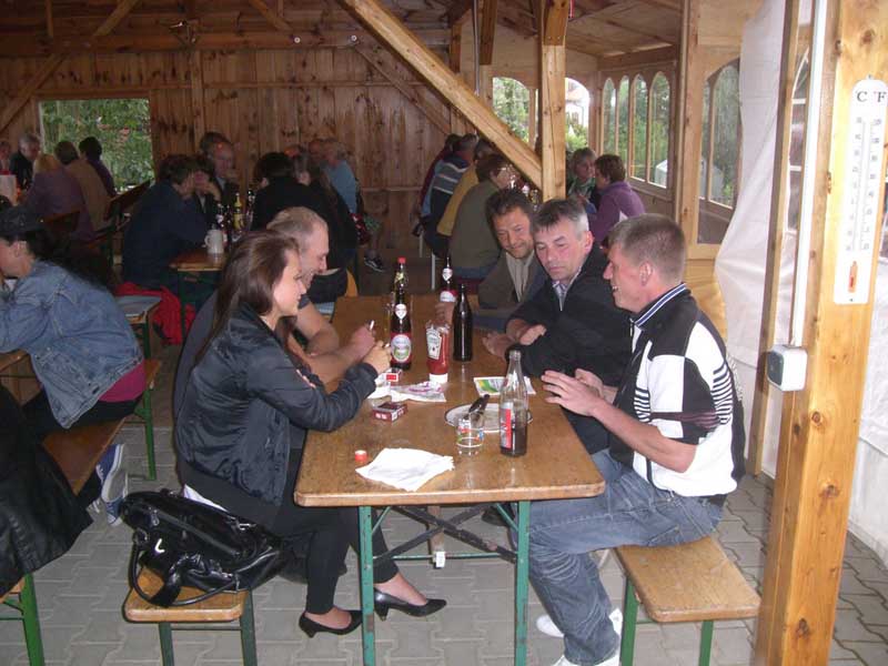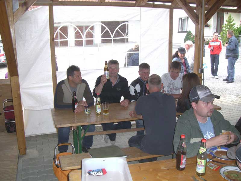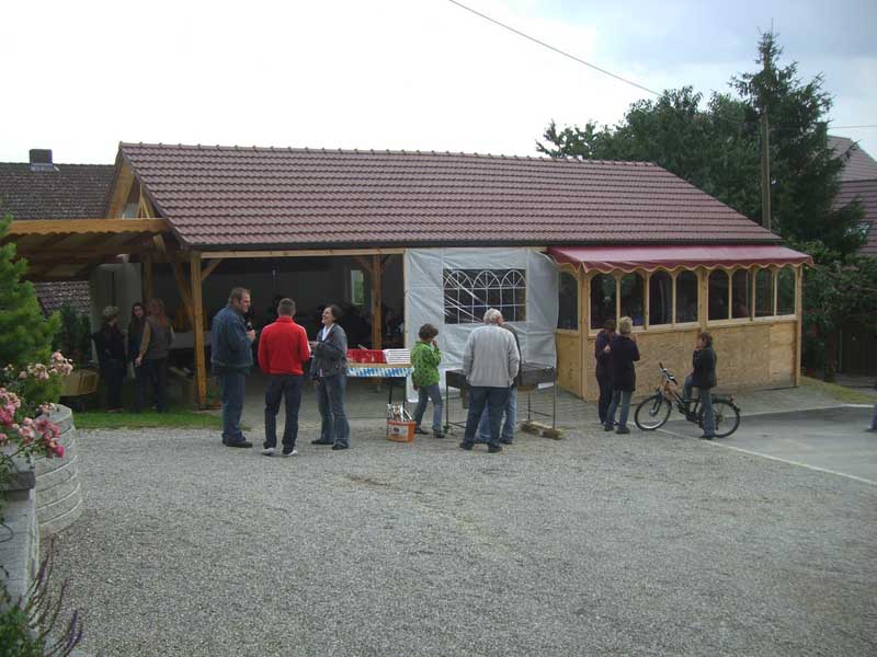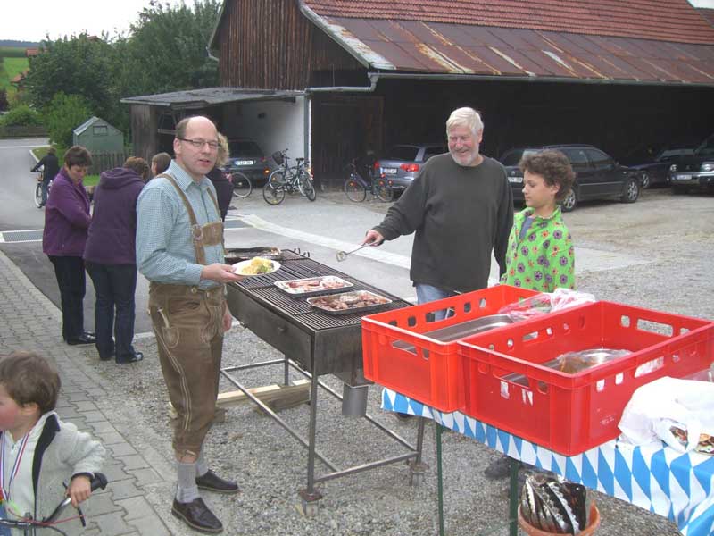 Dorffest 2011 Entgegen der vorangegangenen Jahre war das Hirschbacher Dorffest am 23. Juli eine eher "familiäre" Angelegenheit. Eingeladen wurde in den Wochen vor dem Fest mit einem Umlaufzettel, auf dem die Hirschbacher ihr Kommen anmelden konnten. An besagtem Samstagabend haben wir uns dann beim Omer Sepp in seinem, ja wie soll ich sagen, "Veranstaltungsschuppen" (mir fällt nichts besseres ein) getroffen. Die ca. acht Biertischgarnituren waren am Ende mit einem Großteil der Hirschbacher Bürger gut gefüllt. Offensichtlich hatten die Organisatoren gute Vorarbeit geleistet, denn beim Eintreffen der ersten Gäste war der Grill schon gut geheizt. So konnte der Voitl Konsch, der Mettenleitner Bernhard und der Wagner Helmut zur Tat schreiten und das Fleisch und die Würstel auflegen. Mit der reichlichen Salatbar und den gekühlten Getränken stand dem Fest nichts mehr im Wege. In kurzen Ansprachen haben der Wagner Helmut und der Omer Sepp den Organisatoren und den Helfern den berechtigten Dank ausgesprochen. Die letzten Gesprächsrunden haben bis nach Mitternacht gedauert bis dann auch die letzten Gäste den Nachhauseweg angetreten haben. Für das kommende Jahr soll erst noch entschieden werden, ob wieder ein "großes" Fest abgehalten wird oder ob wieder im kleinen Rahmen gefeiert werden soll. Mir jedenfalls hat es sehr gut gefallen.