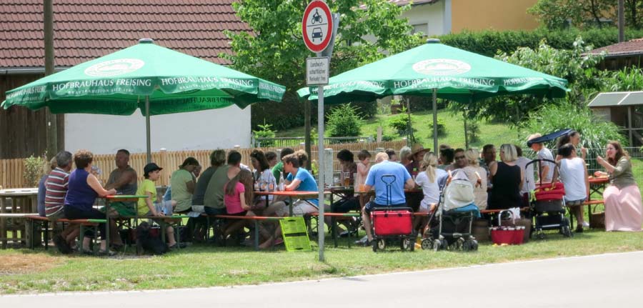 Dorffest 2015 Das Dorffest das heuer am 14. Juni abgehalten wurde, war wieder, so wie schon in den Jahren zuvor, im kleinen Rahmen. Anders und neu war dieses Mal der Start um 12 Uhr und der Platz um den runden Tisch im hinteren Teil von Hirschbach. Bei den Dorfversammlungen im Februar und März hatten insbesondere die Mütter der vielen kleineren Kinder, den Wunsch geäußert doch etwas früher zu beginnen. Trotz oder gerade wegen der des früheren Starts war das Fest mit etwa 50 Hirschbachern gut besucht. Fast alle Tische waren voll besetzt. So konnten sich die vielen Familien das kochen Zuhause sparen und die selbst mitgebrachten überwiegend Fleisch- und Wurstwaren grillen. Ein großer Andrang am Grill war dann die logische Folge. Mit Gelassenheit und etwas Geduld war schließlich jeder gut versorgt. Dazu hat auch die üppige Salatbar beigetragen. Bei einem guten Ratsch vergingen die Stunden wie im Flug. Zum Nachmittag standen noch Kaffee und Kuchen auf den Plan. Fast wie bestellt zum geplanten Ende der kleinen Feierlichkeit um vier Uhr nachmittags, machte ein Regenschauer der Zusammenkunft für viele ein schnelles Ende. Was bleibt ist ein "Dankeschön" an die Organisatoren und den Helfern für den Auf- und Abbau. Zurück zur Übersicht |