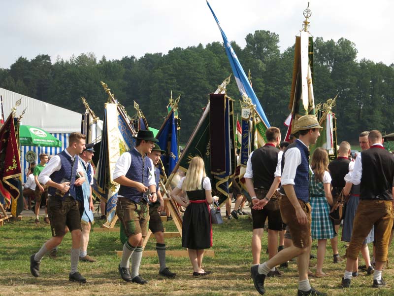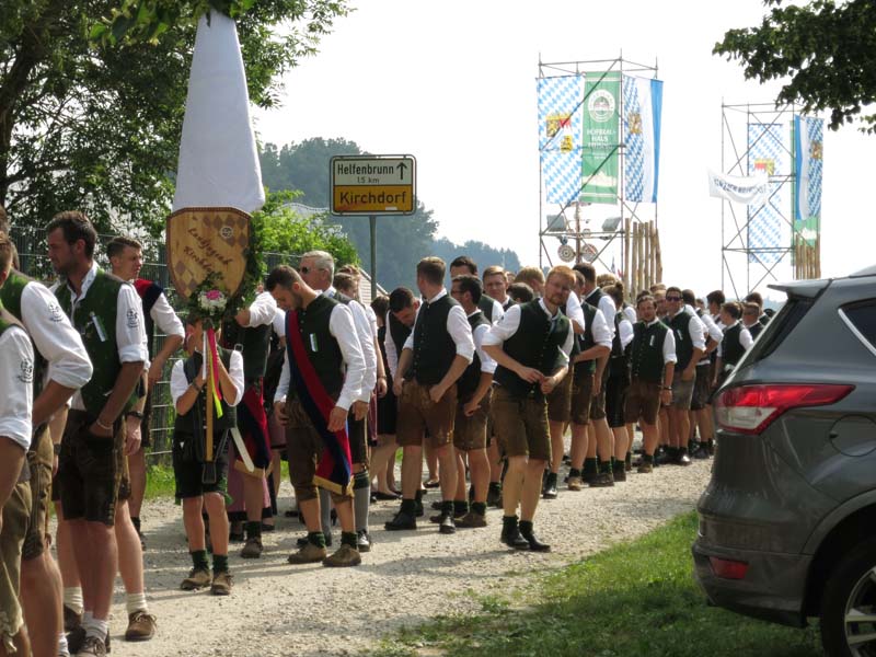 Fahnenweihe der katholischen Landjugend Kirchdorf Es war zwar kein Hirschbacher Ereignis, die Fahnenweihe der katholischen Landjugend Kirchdorf, aber die Tage zwischen 7. und 10 Juni 2018 waren "ein unvergessliches Wochenende". Nachdem sich aber der Verein auch aus einer ganzen Reihe junger Hirschbacher rekrutiert, ist der Beitrag nicht ganz falsch.Begonnen hatte es schon an diesen Donnerstag mit einem Kabarettabend bei dem alle Zuschauer auf ihre Kosten kamen. Gefolgt am Freitag mit der viel umworbenen "Medaparty". Und einem etwas ruhigeren Samstag mit Biergartenbetrieb. Der unumstrittene Höhepunkt des Wochenendes war der Sonntag mit der Fahnenweihe. Ca. 70 Vereine gaben der Kirchdorfer Landjugend die Ehre und waren mit mehr oder weniger großen Fahnenabordnungen vertreten. Allein daraus waren bereits gut 2000 Besucher angemeldet. Mit den vielen schaulustigen (in absolut positiven Sinn) waren die Kapazitäten des Zeltes bald erreicht. Der Einzug der Fahnen ins Zelt am Nachmittag war selbst für älteren Zuschauer ein Ereignis mit vielen Gänsehautmomenten. Die wenigen Worte vermögen die schöne Veranstaltung kaum zu beschreiben. Bleibt nur noch den Veranstalter, der Landjugend, die gebührende Hochachtung für das geleistete und ein herzliches Dankeschön auszusprechen. Zurück zur Übersicht |