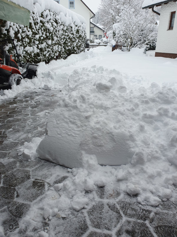 Anfag Dezember 2023 mit viel Schnee Wenn es schon sonst nichts neues aus Hirschbach gibt, dann ist es auch wert mal übers Wetter zu reden.Anfang Dezember 2023 kamen in relativ wenigen Stunden so viel Schnee vom Himmel wie zumindest ich noch nicht oft gesehen habe. So um die 40 cm waren es schließlich die sich da ansammelten. Schön anzusehen, aber eben auch problematisch. Zumindest bei mir im Hof war der doch etwas nasse Schnee "händisch" nicht mehr zu räumen. Auch mit kleinen Räumgerät war nichts zu machen. Mit größerer Maschinenkraft wurde der Schnee allerorts zu immer größer werdenden Berge angehäuft. Doch wie gewonnen so (sprichwörtlich) zerronnen. Das kurz darauf einsetzende Tauwetter mit Regen machte der weißen Pracht schnell ein Ende. Nur die Schneeberge hielten dem warmen Wetter etwas länger Stand. Zu Weihnachten war es dann wieder grün. Zurück zur Übersicht |
