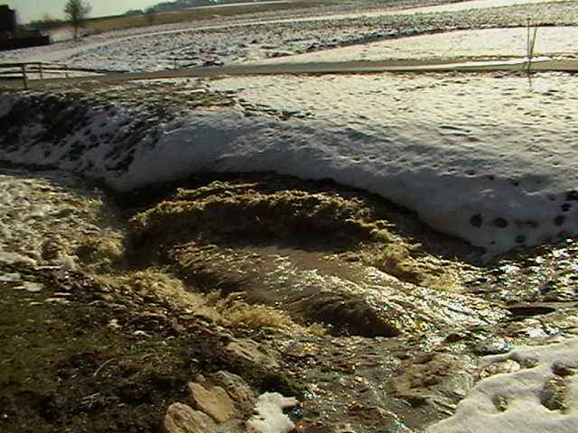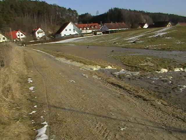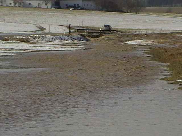 Schneeschmelze 2009 Eigentlich ist so ein Tauwetter kein Anlass um darüber einen Bericht zu verfassen. Dass die neuen Rückhaltebecken aber zum ersten Mal zu kleinen Seen angewachsen sind, finde ich dann doch die paar Zeilen und vor allem die Bilder wert. Zu sehen war, wie schnell der Wasserstand, auch ohne zusätzlichen Regen, angewachsen ist und wo noch was getan werden kann (muss).Dieses kleine Video zeigt die großen Wassermassen die an diesen Tag in den Rückhaltebecken aufgefangen wurden. Ich bitte um Nachsicht für die schlechte Qualität. Zum Start bitte im Video den entsprechenden Button drücken. Zurück zur Übersicht |