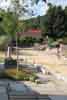 der Versorgung führten. Oder die Einrichtung großzügiger Wasserabläufe an den Nebenstraßen, die Bauarbeiter hatten reichlich zu tun. Seit Mitte Juli wird der Verlauf der neuen Ortsstraße sichtbar. Erst durch das Schnurgerüst, später durch das Setzten der Randsteine nimmt das Bauwerk Gestalt an.