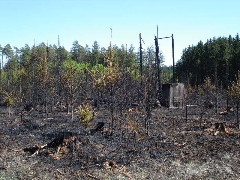 Brand im Hirschbacher Holz Aufgrund der langen Trockenheit kam es am 30. April 2007 zu einem Brand im Hirschbacher Holz (Lage s. Foto).Gegen 16:30 war der erste Alarm der Kirchdorfer Sirene zu hören. Nicht lange darauf rückten die Feuerwehren aus allen Richtungen an. Bis aus Neufahrn kamen Einsatzkräfte um die örtlichen Feuerwehren zu unterstützen. Schnell wurde klar, dass die Versorgung der Wehren mit Wasser das größte Problem darstellte. So unterstützen einigen Landwirte aus den umliegenden Ortschaften die Wehren mit ihren Güllefässern, um Wasser zu dem abgelegenen Brandplatz zu bringen. Zeitweise wurde auch erwogen, die leeren Tanks der Feuerwehren aus den Hirschbacher Löschweiher aufzufüllen. Kurz nach der Alarmierung kam ein Hubschrauber der offensichtlich für die Brandbeobachtung zuständig war. Später war noch ein weiterer Hubschrauber zur Unterstützung der Löschkräfte im Einsatz. Der kalte Ostwind trieb die dicken Rauchschwaden zum Schelcher, so dass der Hof zeitweise von Hirschbach aus nicht mehr zu sehen war. Auch die Polizei hatte alle Hände voll zu tun, um die Schaulustigen in sicherer Distanz vom "Ort des Geschehens" zu halten. Es dauerte bis in die frühen Abendstunden, bis der Brand unter Kontrolle war und der größte Teil der Löschkräfte abgezogen werden konnte. Beim Bild, das sich tags darauf bot, kann man eigentlich von Glück reden, dass "nur" ein Waldstück der Größe von etwa 50x200 Metern ein Raub der Flammen wurde. Nur dem beherzten Einsatz der Hilfskräfte ist es zu verdanken, dass der Schaden in Grenzen gehalten werden konnte. Zurück zur Übersicht |