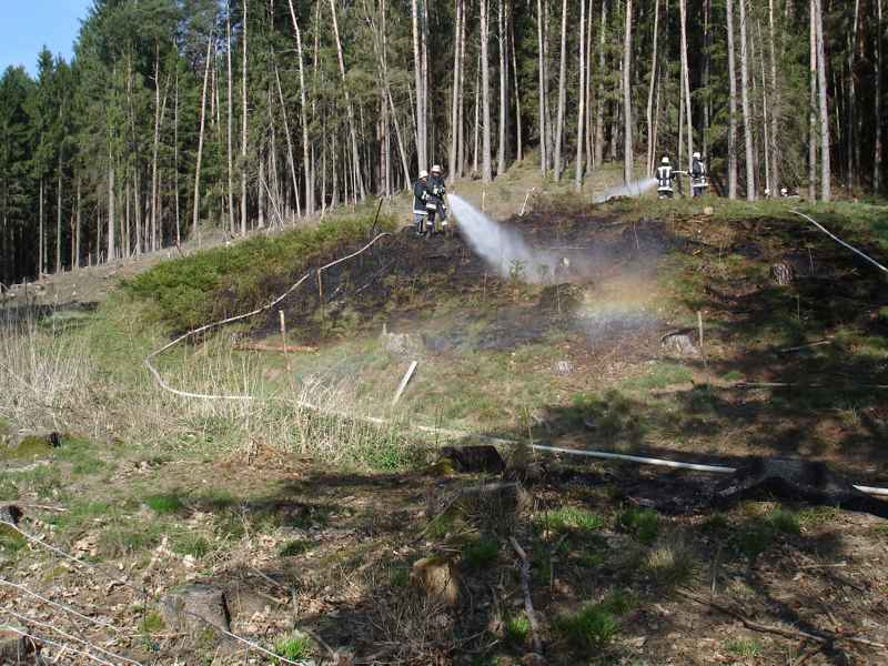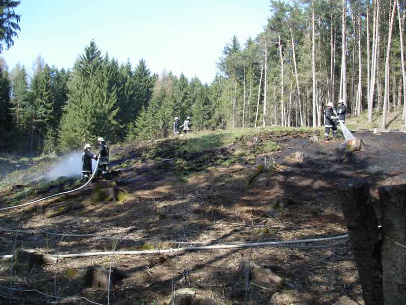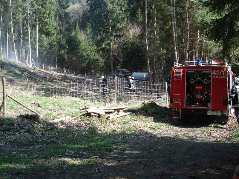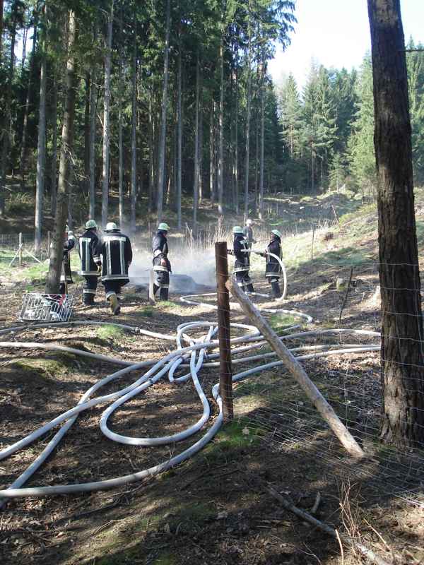Brand im Wald nahe Hirschbach Heute, am Karfreitag 2009, hat am Nachmittag um etwa 15:00, der Anlieger an das Waldgrundstück (Herr Feicht) den Brand bemerkt. Herr Feicht und Herr Lohberger, der die starke Rauchentwicklung gesehen hat und kurze Zeit später an der Brandstelle war, versuchten, das Feuer zuerst mit Schaufeln auszuschlagen. Relativ schnell wurde klar, dass das Unterfangen aussichtslos war.Nachdem die Feuerwehr alarmiert war, trafen kurz nacheinander die Wehren aus Kirchdorf, Wippenhausen und Nörting ein. Mit vereinten Kräften war der Brand schnell unter Kontrolle. Bei der Löschaktion wurde wieder ein Problem deutlich, dass die Löscharbeit bereits beim Brand vor zwei Jahren (Bericht) erschwerte. Die (Schlauch)Wege zum Feuer können im Wald sehr lang werden. Diesmal lag der Brand (glücklicherweise) unmittelbar am Ortsrand von Hirschbach. Trotzdem dauerte es etwas bis die ca. 200m Schlauch verlegt waren. Hier sollte man doch auf die angebotene Hilfe der Landwirte mit einem Güllefass zurückgreifen können. Nur ein Schlauchadapter wäre notwendig, um schnell auf die Wassermengen aus so einem Fass zurückgreifen zu können. Warum ich hier darauf hinweise? Schon vor dem Eintreffen der Feuerwehr stand ein mit Wasser gefülltes Güllefass am Brandort, nur musste das Wasser wegen des fehlenden Adapters im Fass bleiben. Zurück zur Übersicht |