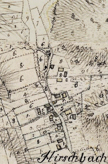Ein weiteres Mal wird Hirschbach im Jahre 826 urkundlich aufgeführt. Damals übergab ein Grundherr Namens Fritola seinen Besitz "den er am Orte hatte, den man allgemein Hiruzpach nennt", dem Freisinger Dom.
